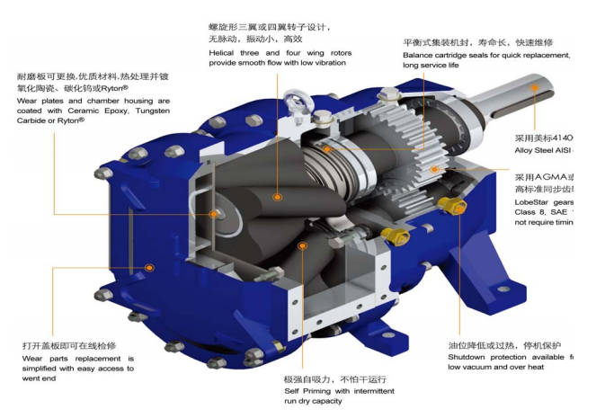 相对离心泵,没有脉动、震动小,噪音低,转速低,磨损轻,可以抽空气,不易气蚀;