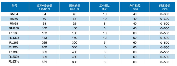 较强磨损介质(含沙污泥) 建议泵转速:150-200RPM